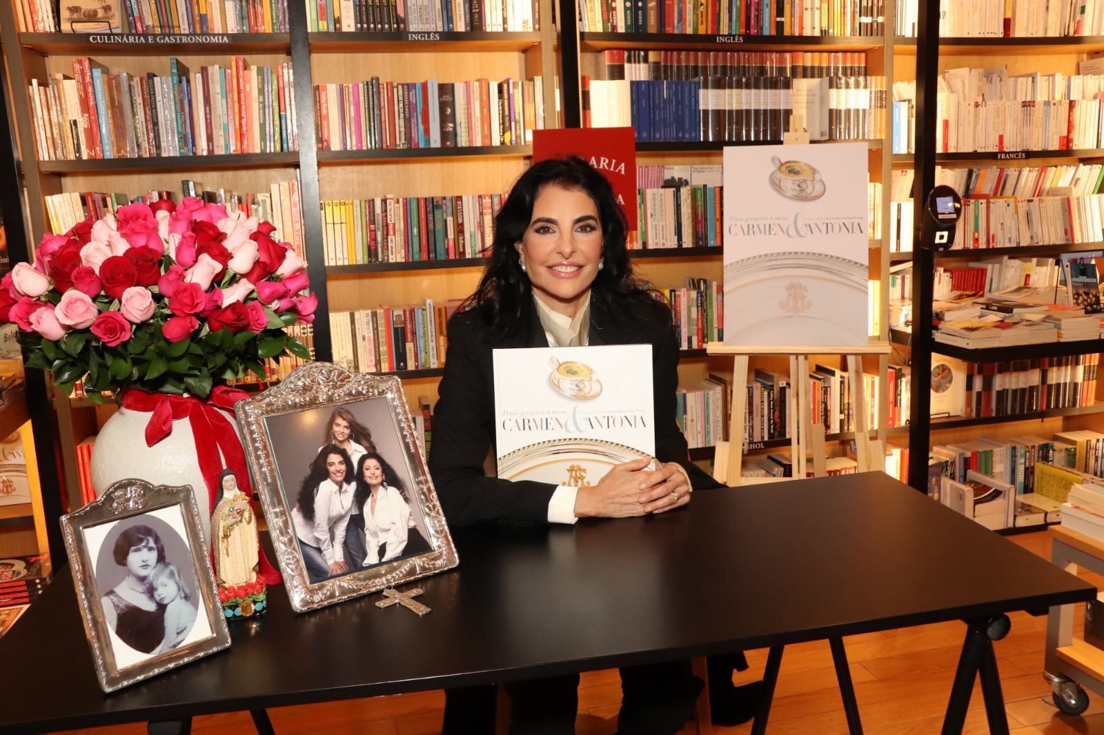 A atriz e apresentadora Antonia Frering lançou na tarde da segunda-feira (10), o livro Carmen & Antonia – Duas Gerações à Mesa, em evento exclusivo na Livraria da Travessa, no Shopping Iguatemi, em São Paulo. O lançamento atraiu admiradores da atriz e da história de sua mãe, Carmen Mayrink Veiga.