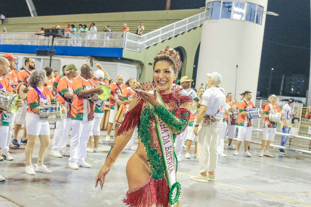Ingrid Mantovani é coroada Rainha de Bateria da X9 Paulistana durante ensaio no Anhembi
