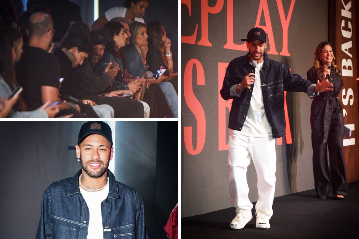 Mas, alheio a qualquer bafafá, Neymar estava sorridente, nesta sexta, no evento da marca italiana Replay, que ocorreu no Allianz Parque, em São Paulo, e que foi apresentado por Barbara Coelho.